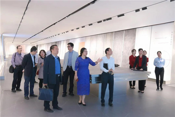 陳先輝副總裁首先帶曾令榮院長(zhǎng)一行參觀了全新落成的總部展廳。在展廳最具代表性的設(shè)計(jì)之一——瓷磚山處,陳總向來(lái)賓們介紹到,這些高大雄偉瓷磚山其實(shí)都是由瓷磚的邊角料堆疊而成,這不僅傳遞了新明珠的可持續(xù)環(huán)保理念,也蘊(yùn)含了新明珠人通過(guò)28年的努力積累,不斷沉淀,從而達(dá)到現(xiàn)有高度的寓意。