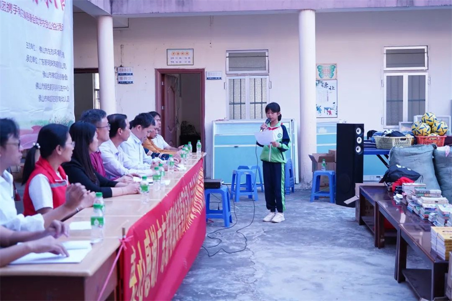活動(dòng)由佛山生態(tài)環(huán)境局禪城分局副局長、機(jī)關(guān)黨委書記嚴(yán)聰主持,佛山市生態(tài)環(huán)境局禪城分局黨組書記、局長李鳴一,新明珠集團(tuán)黨委組織委員邱靜華、團(tuán)委書記利錦萍,南莊鎮(zhèn)慈善會(huì)梁瑞玲女士、佛山綠色家園環(huán)境保護(hù)促進(jìn)中心李文亮先生等主辦、承辦單位代表及百豐山村小學(xué)校方、百豐山村委會(huì)等共同參加了本次捐贈(zèng)儀式。