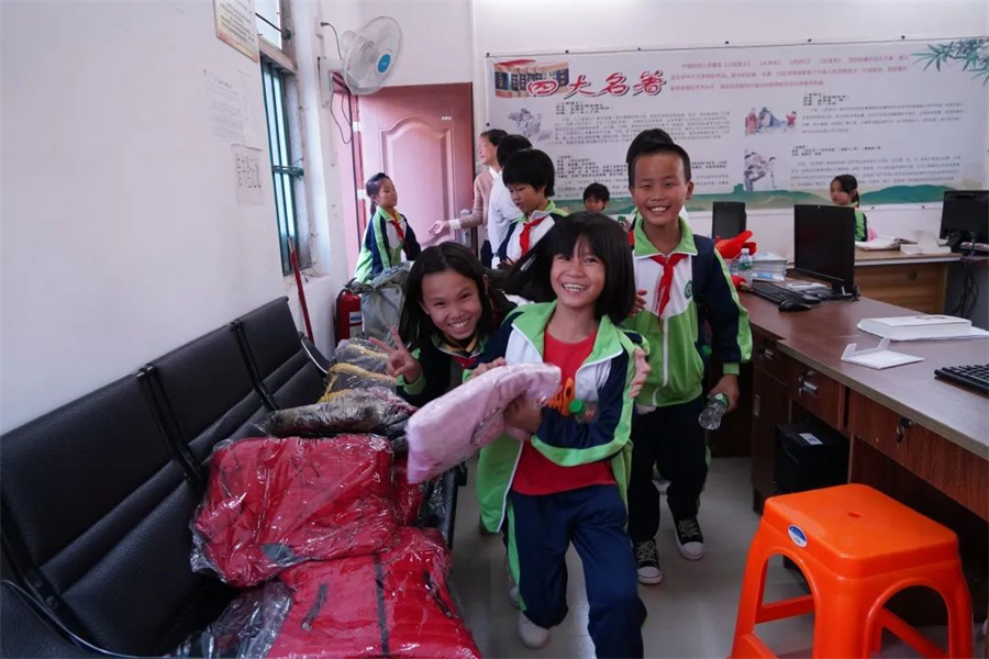 作為活動(dòng)承辦及公益募捐的主要發(fā)起單位,新明珠早在10月份就開始在集團(tuán)內(nèi)部開展公益募捐活動(dòng),并得到了廣大新明珠人的踴躍參與,最終募集到了過冬衣物近1噸、各類課外書籍300多本、辦公家具約50 多件以及一批全新的籃球架、乒乓球臺等體育設(shè)施,這批愛心物資也在12日下午正式交付到百豐山村小學(xué)孩子們的手中。