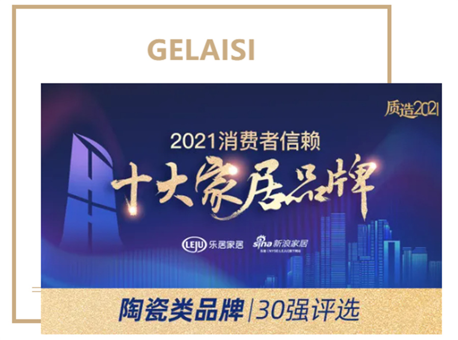 歷時40多天的專家評委會多輪的評審,消費者網絡票選及設計師、工長實名投票,累計獲得有效網絡投票66.3萬,終于盼來了「尋找優質消費者品牌--2021消費者信賴家居品牌品類30強-陶瓷類」榜單的正式揭曉。格萊斯瓷磚深得消費者的推崇,以品質贏得用戶的口碑,從品牌角逐中脫穎而出,榮膺“2021消費者信賴陶瓷品牌30強”稱號。