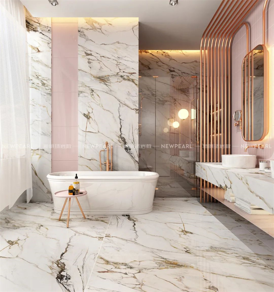 全巖衛浴應用,指的是在衛浴空間里盡量應用巖板,比如墻地面、浴室柜、淋浴區等地方。