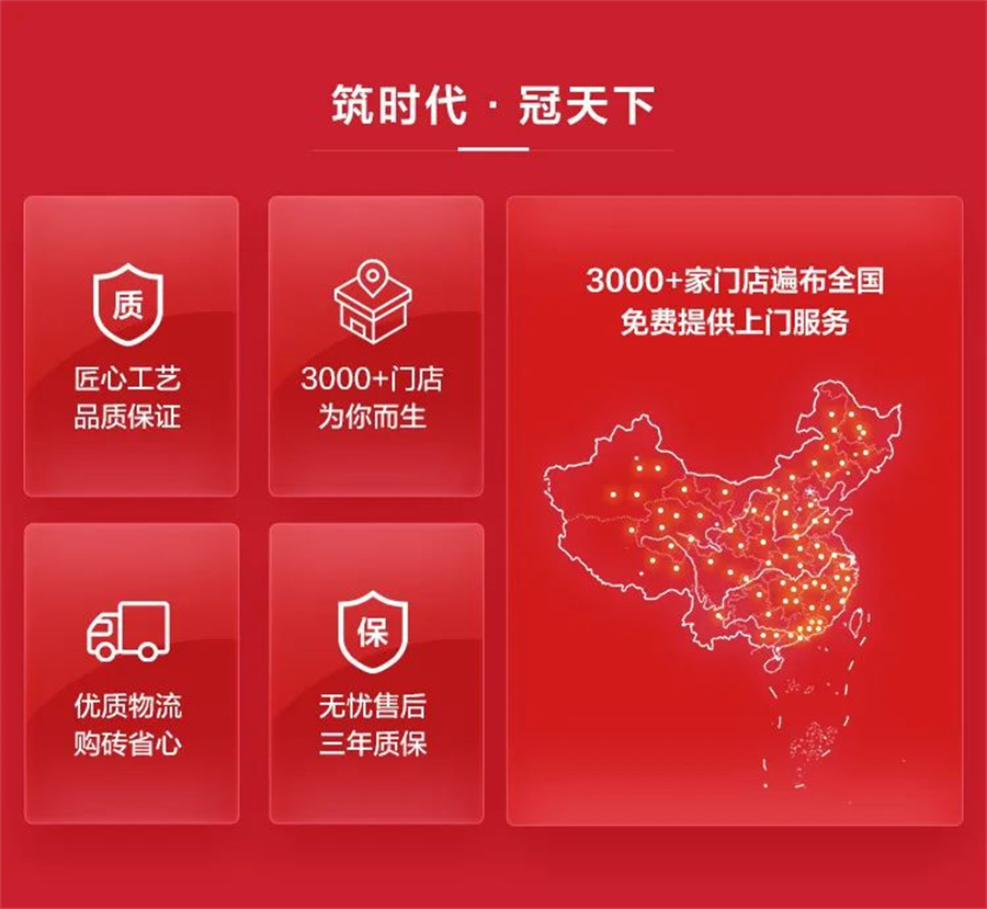 冠珠推出的“金冠服務(wù)法則”, 建立安心購(gòu)磚金牌服務(wù)標(biāo)準(zhǔn),重新定義飾材購(gòu)物服務(wù)水平,實(shí)現(xiàn)瓷磚選購(gòu)從線上到線下的一站式服務(wù),讓購(gòu)磚無(wú)后顧之憂,體現(xiàn)大國(guó)品牌的誠(chéng)意和用心