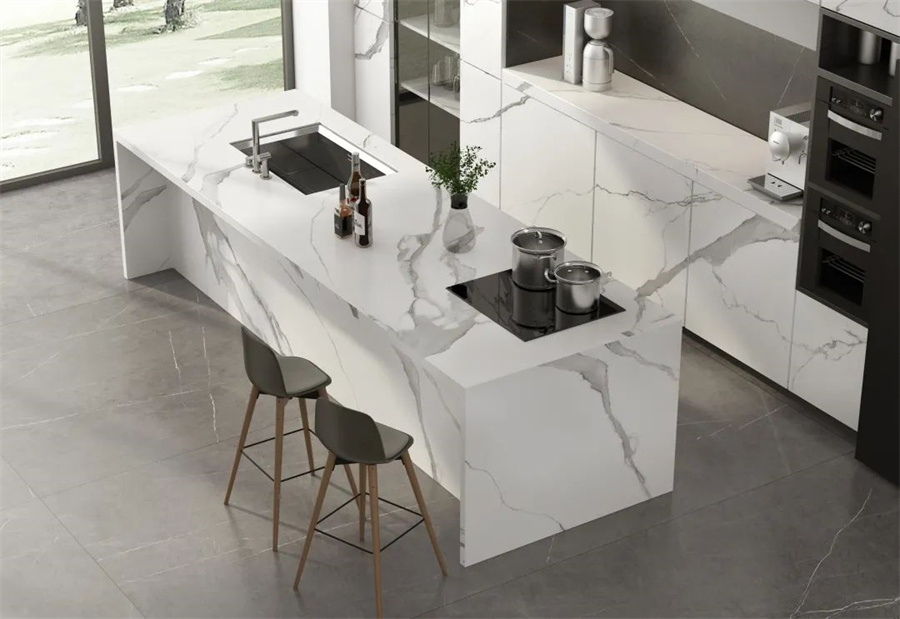 2017年,新明珠率先推出3200×1600×6mm的超大規格薄型巖板。隨著技術的不斷改良升級,新明珠后續又推出了厚度為4.5mm,甚至3.5mm的超薄巖板產品。相比常規瓷磚12mm的厚度而言,薄型巖板至少可節約50%的原材料,產品在壓制、燒成等生產環節所需消耗的能源也可減少30%以上,綜合能耗達到《建筑衛生陶瓷單位產品能源消耗限額》(GB21252-2013)先進值。