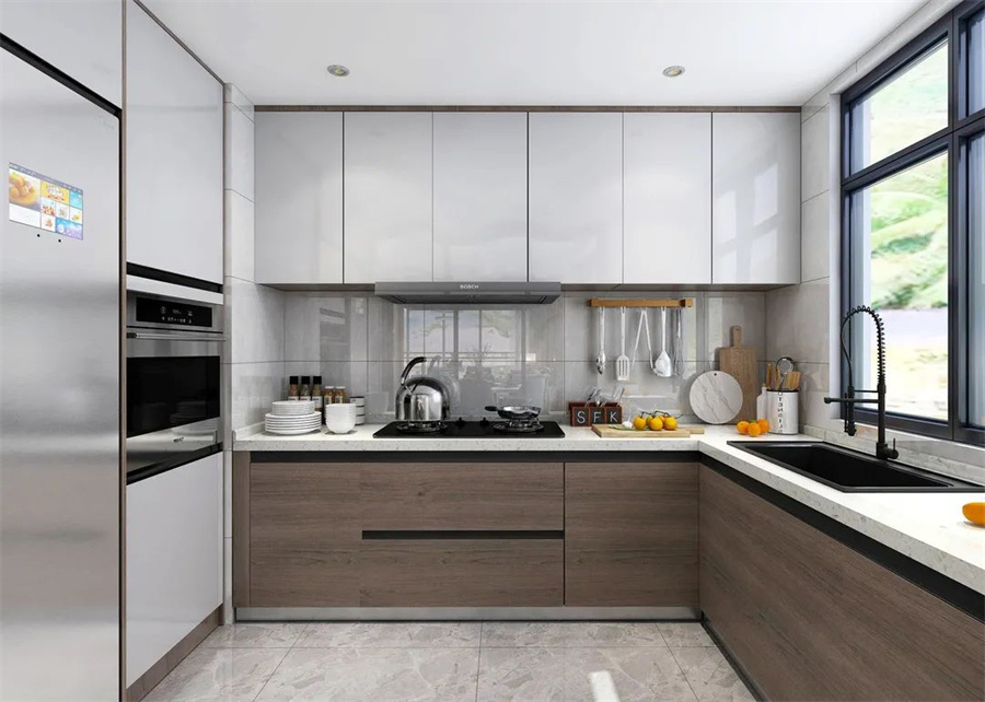 廚房則偏重于實用主義,全現代設計,更顯得干凈、清爽和整潔。