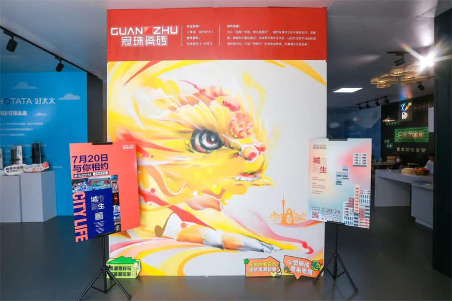 活動(dòng)首天,冠珠創(chuàng)意生活館便迎來(lái)了人山人海的盛況,由冠珠瓷磚VI色延伸出來(lái)的紅黃撞色的南粵醒獅,吸引了諸多網(wǎng)紅、達(dá)人、設(shè)計(jì)師紛紛前來(lái)打卡!