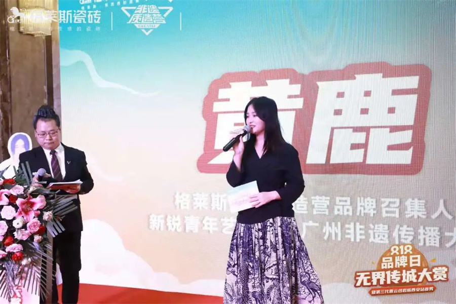 隨后,格萊斯瓷磚品牌總經理黎汝讓通過視頻直播致辭。他表示,格萊斯創新推出的香云紗瓷磚打造文化自信的潮流,讓非遺文化以新的表現方式走進尋常老百姓家里。隨著格萊斯非遺融合計劃的推進,非遺文化已成為格萊斯極具辨識度的獨有品牌IP,“使用,就是最好的傳承”不僅是我們對非遺傳承的態度,更是讓年輕一代感受非遺文化的創新方式。