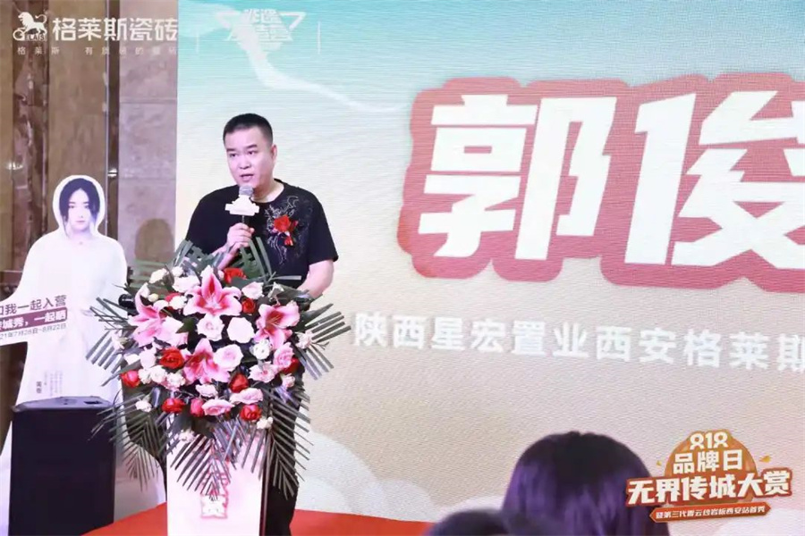 在直播盛典上,陜西星宏置業有限公司、西安格萊斯瓷磚總經理郭俊奇致辭。他坦言,2003年,陜西星宏建材家居公司成為格萊斯品牌西安經銷商,多年來公司團隊通過周到的服務不斷獲得了消費者的支持與信任,也讓格萊斯品牌發展成為陜西人民最喜愛和最信任的建材家居品牌之一。通過展廳云逛展,相信大家對格萊斯品牌和產品有更深入的了解,體驗到文化傳承背后的品牌用心。