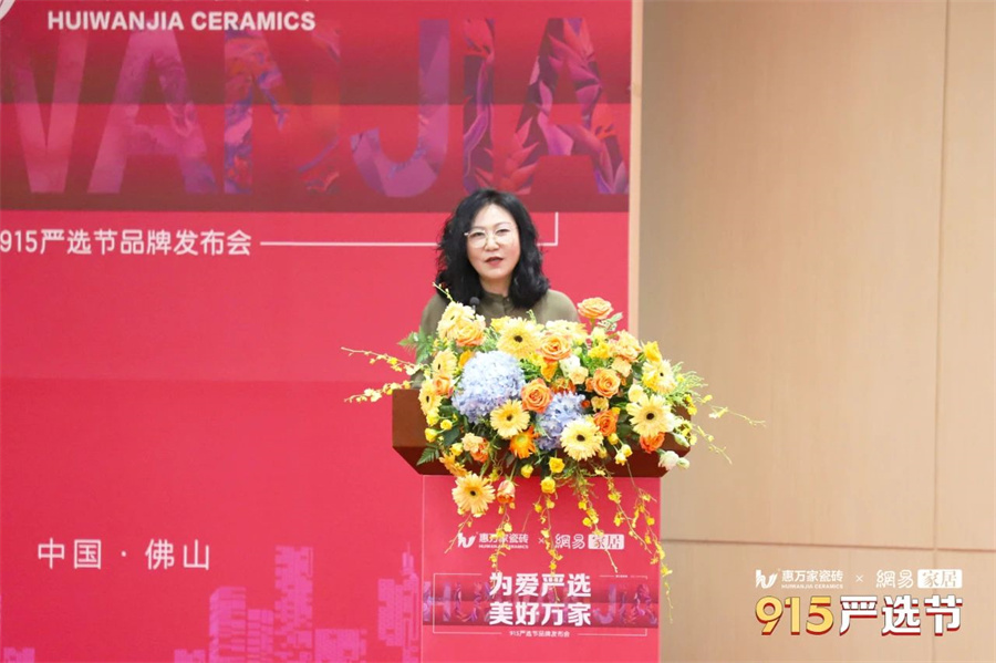 網(wǎng)易家居主編鄭哲女士發(fā)表《家裝不將就 瓷磚要嚴(yán)選》主題演講,從消費(fèi)的角度剖析解讀了家居市場(chǎng)發(fā)展趨勢(shì),通過(guò)對(duì)消費(fèi)者需求變化的洞察,總結(jié)出當(dāng)下消費(fèi)者選購(gòu)瓷磚的指南,與惠萬(wàn)家瓷磚一同為廣大消費(fèi)者群體嚴(yán)選好產(chǎn)品。