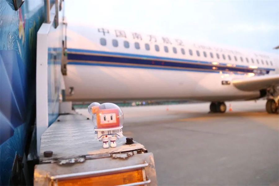 在與南航合作中,冠珠特別選擇了投放明星機型“阿嬌”ARJ21——中國首款自主研發支線飛機。