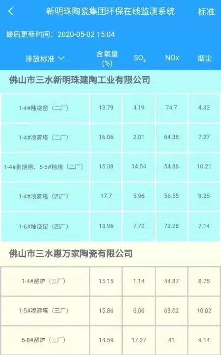 隨著互聯網科技和信息化應用的技術創新,新明珠集團在陶瓷行業中率先開發出環保在線監控數據手機APP管理平臺,將各生產基地的生產數據信息互聯互通,實現集團總部、各園區(分廠)、生產車間的環保在線監控數據在手機APP上實時監控與管理,打造一個全新的環保監管體系,集團各生產主管可以通過查看手機APP掌握基地實時生產情況,通過在線監控數據的實時傳輸對生產現場進行調控管理,發現有廢氣排放口排放的數據超過企業內控標準的,及時查找原因,確保生產廢氣達標排放。