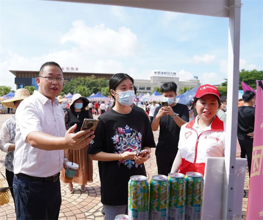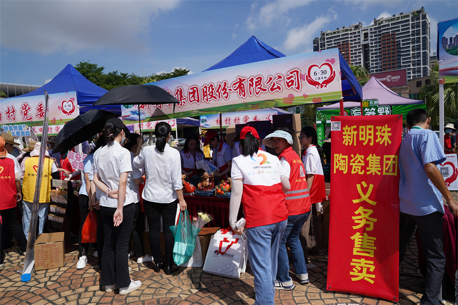 活動現場,由南莊鎮23個村委和4個機關聯合黨支部組成的義賣攤位一字排開,各類帶有地方特色的茶葉、初心米等豐富的農產品琳瑯滿目,新明珠集團義賣攤位以各式形態生動的石灣陶瓷公仔集聚了超高人氣,吸引了大批愛心人士。