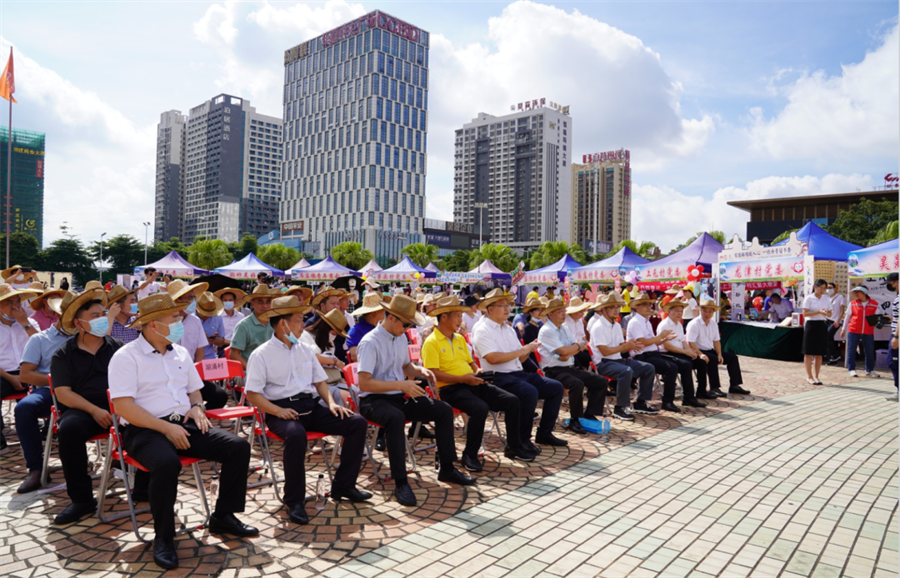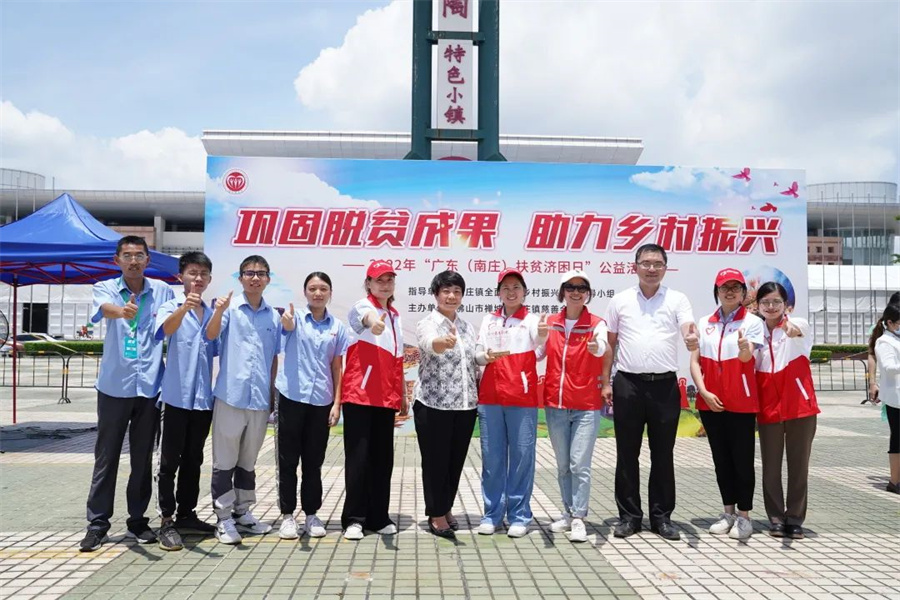 南莊鎮副鎮長羅艷明、鎮農業農村辦公室主任潘漢基與新明珠集團志愿者合影