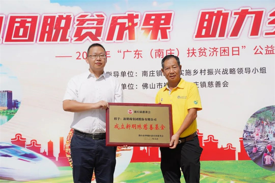 作為南莊鎮慈善會的會長單位,新明珠集團積極履行社會責任,現場向南莊鎮對口幫扶的黔東南州黎平縣鄉村振興局捐贈美麗鄉村建設物資170萬元。同時,為了表彰新明珠集團對南莊公益事業一直以來的支持,南莊鎮慈善會還向新明珠集團冠名授牌“成立新明珠慈善基金”。