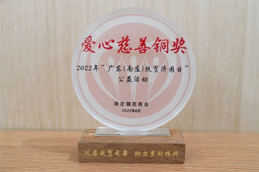 最后,經過大會評選組評定,新明珠集團義賣攤位榮獲2022年“廣東(南莊)扶貧濟困日”公益活動“愛心慈善銅獎”。