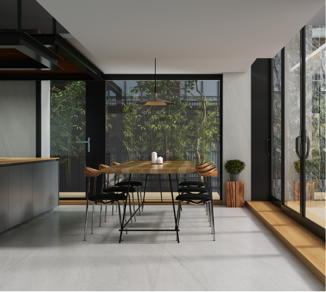 秉承“少即是多”的設計理念,新明珠巖板全新升級推出了「悅色系列」為名的素色巖板產品,融入了新研發的“超細干?!肮に?,產品表面光澤度5~7°,手感真實且舒適自然,近看能感受到產品表面清晰的顆粒細節,遠看則帶著恰到好處的光澤質感,不顯沉悶。