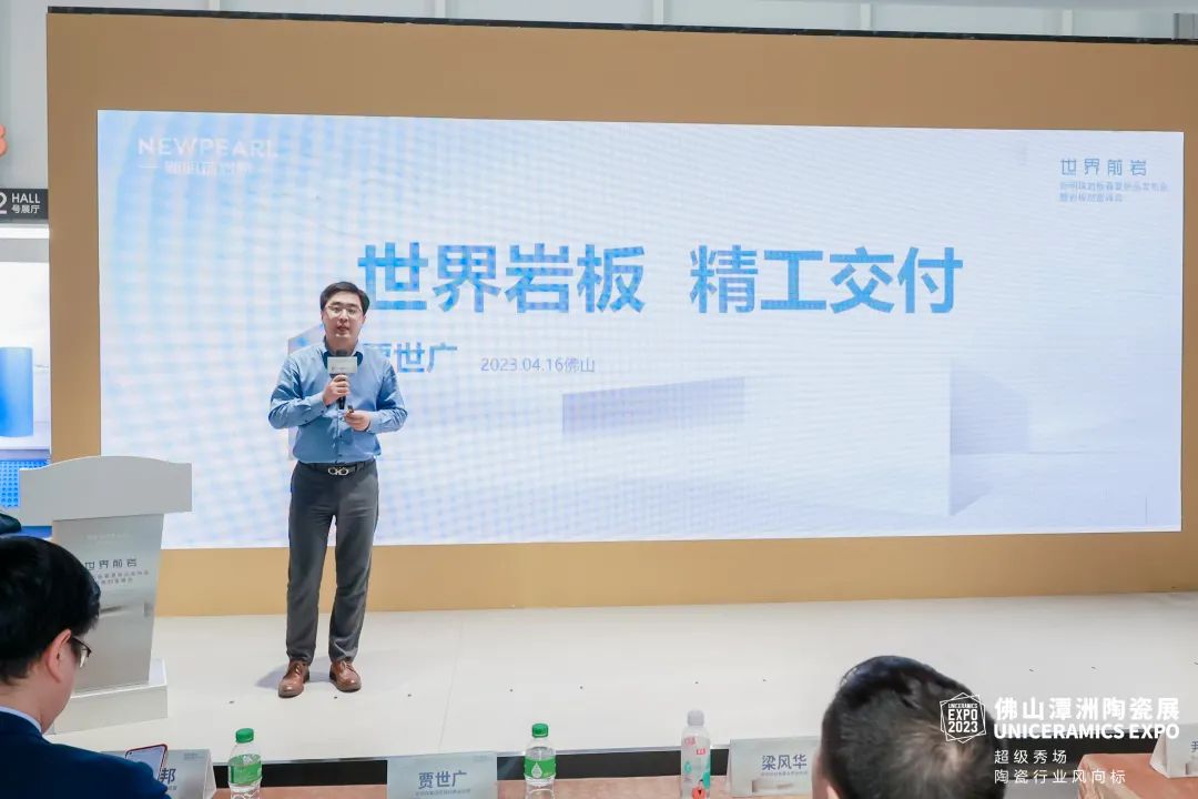 在接下來的環節里,新明珠集團明珠科筑總經理賈世廣以“世界巖板·精工交付”為主題,系統且詳盡的介紹了新明珠集團“明珠科筑成品交付系統”。