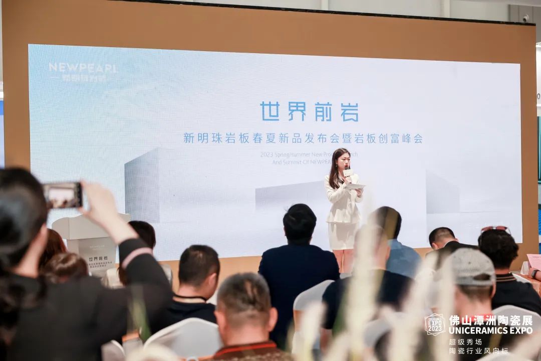 4月16日下午2點半,新明珠巖板「世界前巖」“春夏新品發布會暨巖板創富峰會”在佛山潭洲國際會展中心3號館302新明珠巖板「前巖空間站」主題展館正式開幕。發布會上高朋滿座,云集了眾多行業內外領導嘉賓,以及來自全國各地的簽約客戶代表、行業大咖和媒體朋友。