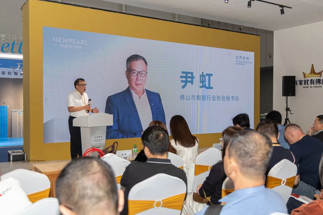 首先為發布會開場的是佛山市陶瓷行業協會秘書長尹虹,尹博士以一個老朋友的身份,通過“簡·奢·真”三個關鍵字,分享了他對新明珠巖板春夏新品的理解:大道至簡,簡奢優雅,返璞歸真,并表示非常期待新明珠巖板春夏新品在市場上大放異彩,讓更多的用戶感受來自巖板的美好體驗與幸福哲學。