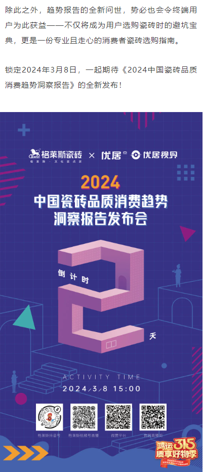 期待!2024中國瓷磚品質消費趨勢洞察報告即將火爆來襲