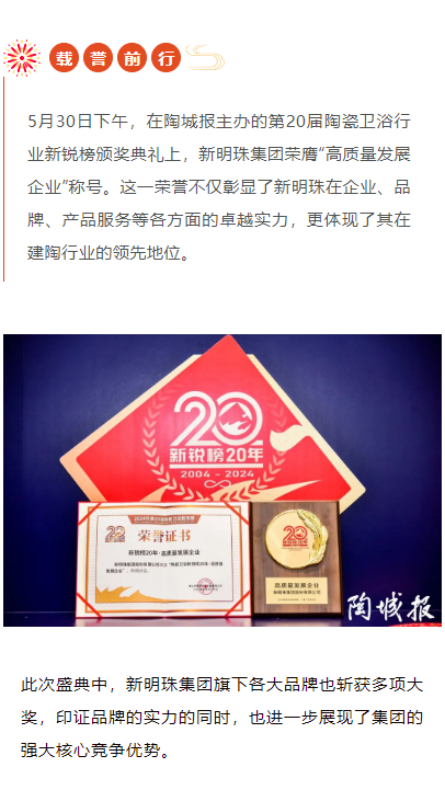 行業“奧斯卡”放榜!新明珠集團榮膺“高質量發展企業”大獎