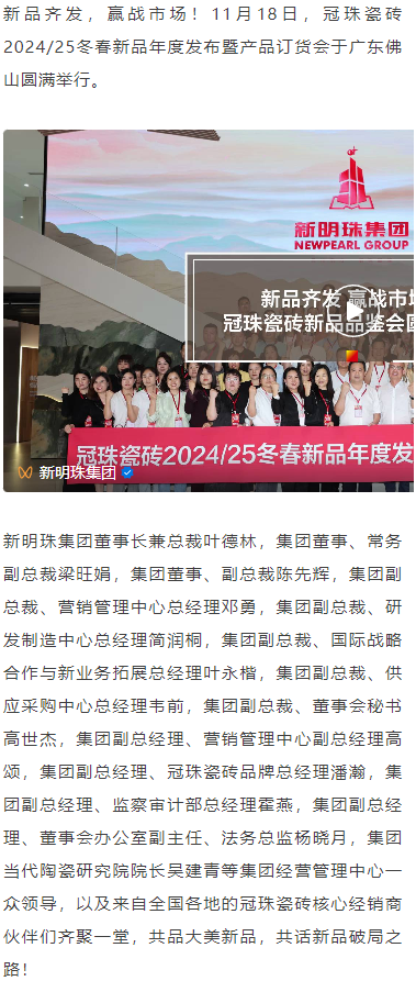 新品齊發(fā),贏戰(zhàn)市場(chǎng)!冠珠瓷磚2024/25冬春新品年度發(fā)布暨產(chǎn)品訂貨會(huì)圓滿舉行
