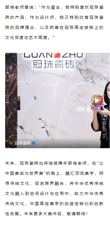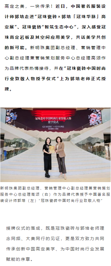 官宣 | 中國(guó)著名服裝設(shè)計(jì)師郭培出任“冠珠瓷磚中國(guó)時(shí)尚行業(yè)致敬人物”,高定之美一塊傳承!