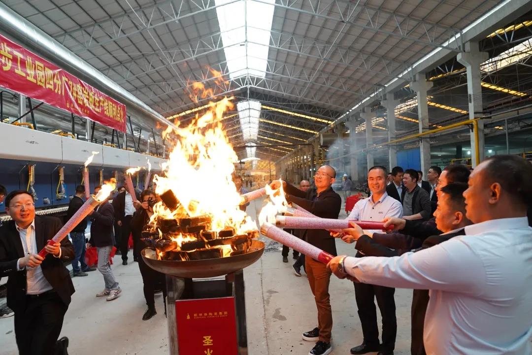 新明珠陶瓷集團副總裁、新明珠綠色建材基地生產總經理簡潤桐,園區管委會主任岳軍廣,三四廠生產經理陶志航及多位供應商代表一起出席了點火儀式,熊熊燃燒的窯火標志著新明珠在巖板制造領域的標桿地位更加鞏固。