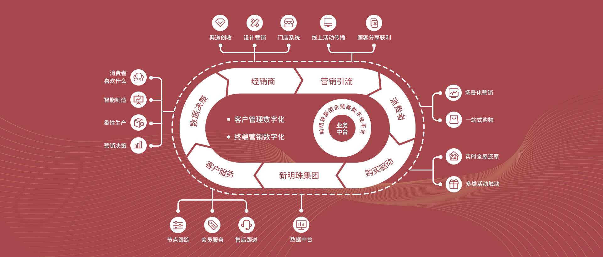 圍繞打造“新明珠模式”商業閉環和平臺化,新明珠集團正強力推進“明珠家世界項目”的建設。聚焦攻堅新零售生態供應鏈,通過大數據打通線上線下屏障,拓寬終端銷售渠道,提升客流量與轉化率,優化消費體驗,精準生產,合理備貨,幫助門店效率和業績翻番。目前,明珠家世界平臺已搭建完善,覆蓋設計(快繪)、銷售(愛窩薈商城)、門店管理(智慧門店)全流程,并廣泛應用于全國終端門店,構建了陶瓷行業較早自主建立“互聯網+品牌”的深度垂直新零售運營體系。